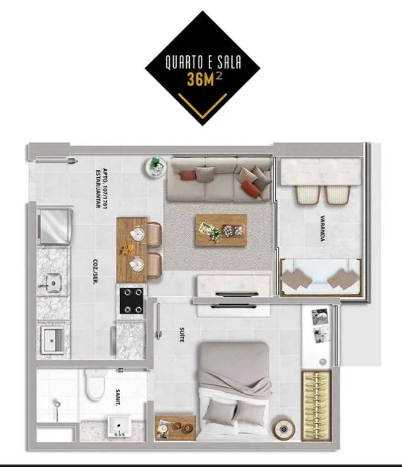Studio com 36m²