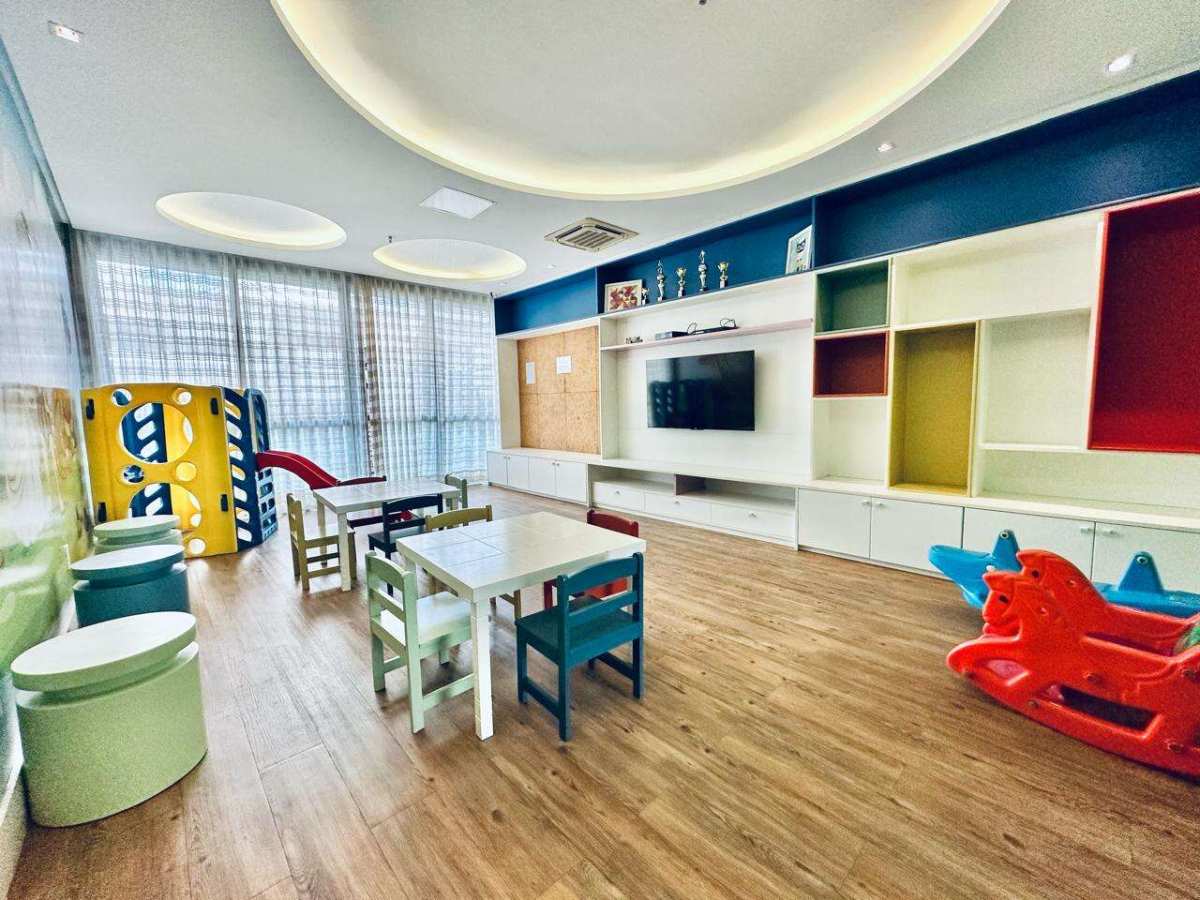 Estrutura de lazer completa: Piscina com borda infinita, quiosque, academia, brinquedoteca, parque infantil, salão de festa, salão de jogos, quadra, etc.