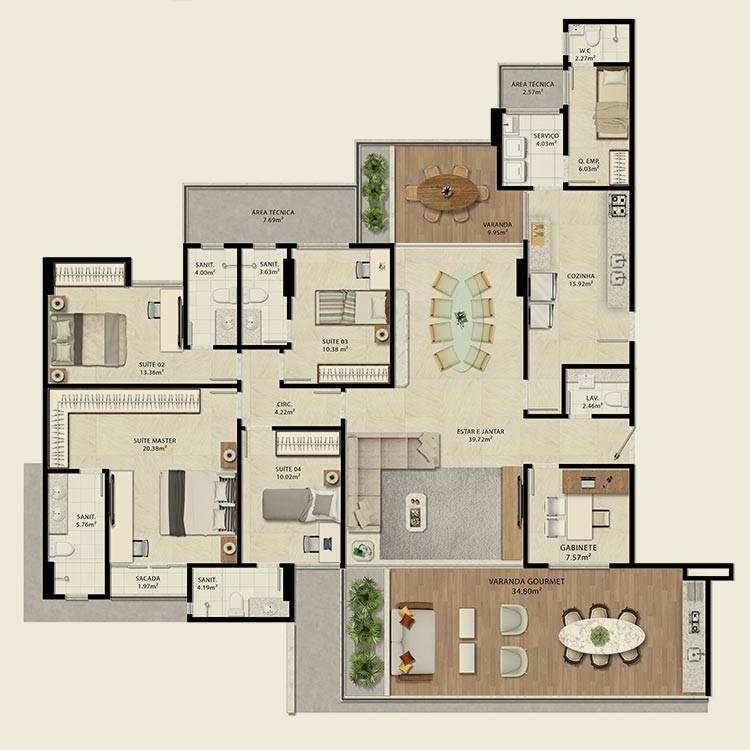 4 suítes amplas
