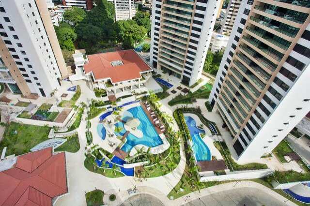 Área de Lazer e segurança completa: segurança 24 horas, piscinas, salão de festa, academia climatizada, piscina aquecida e coberta, quadra de tênis, quadra de vôlei, salão de jogos, parquinho, jardins, SPA, sauna, quadra de squash, jardins, etc.