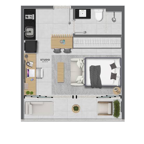 Studio com 25m²