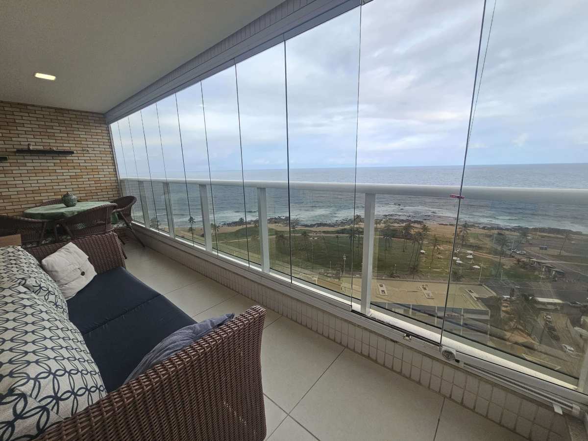 Varanda ampla com fechamento de Reiki e vista mar