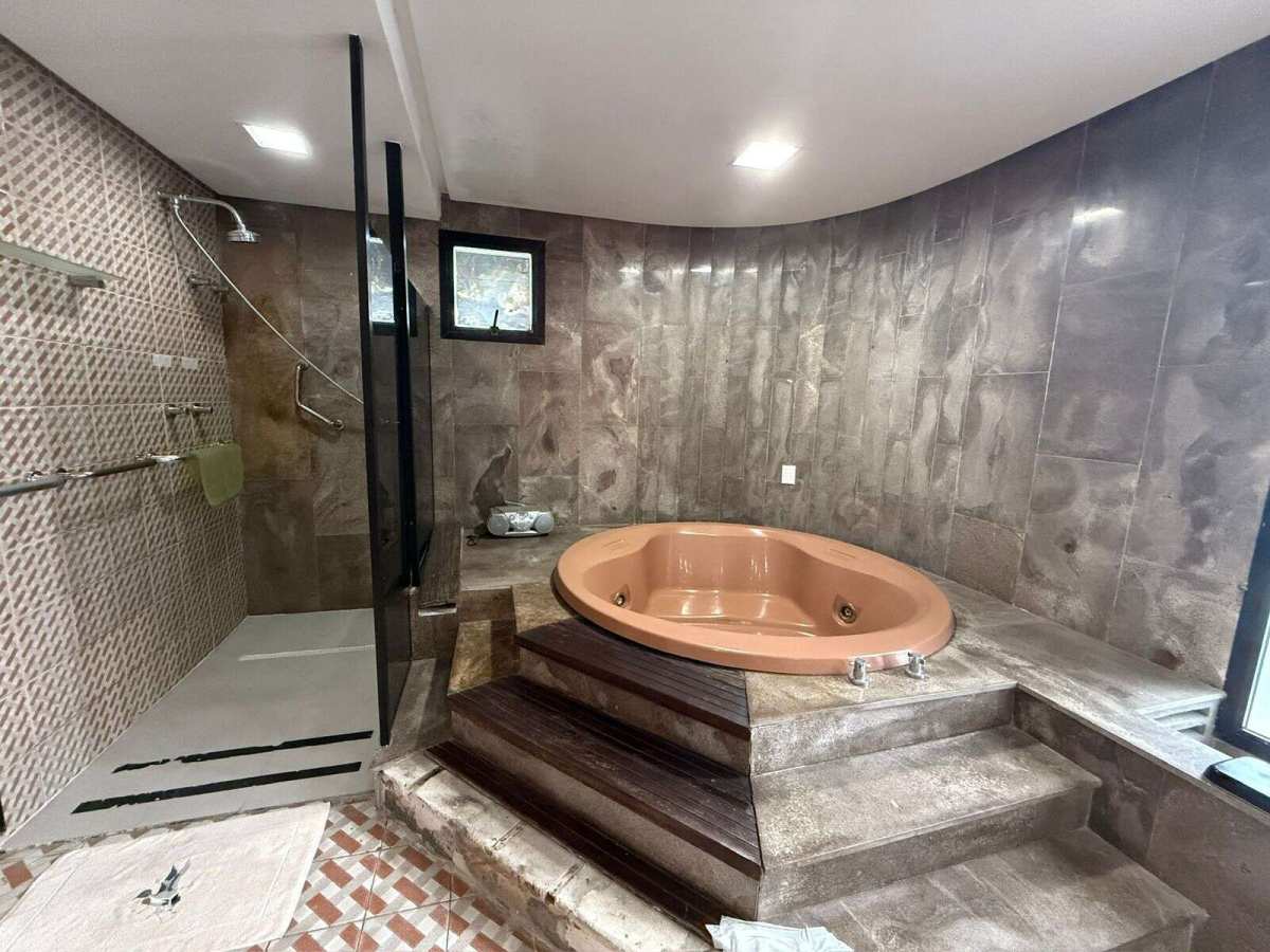 4 suítes amplas sendo master com closet e banheira de hidromassagem em grande banheiro
