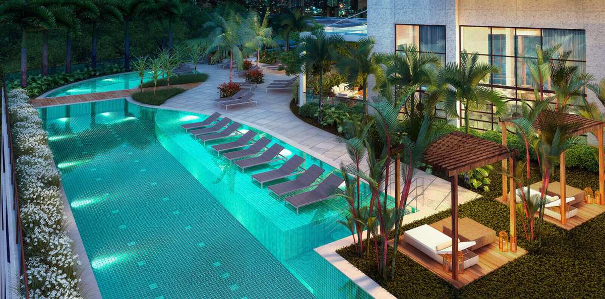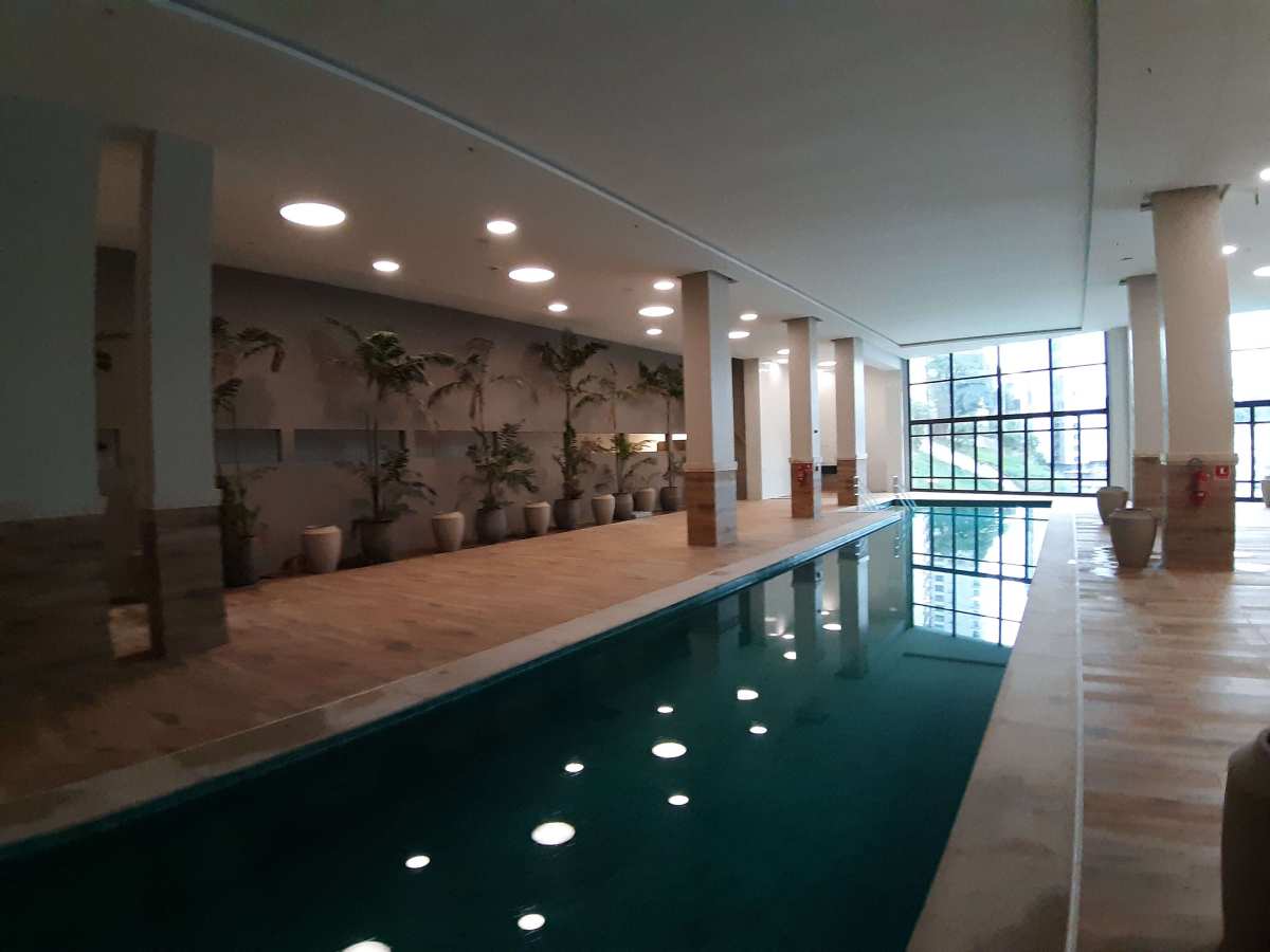 Área de Lazer e segurança: segurança 24 horas, piscina, piscina coberta e aquecida, salão de festa, academia climatizada, parquinho, cinema, sala de squash, etc.