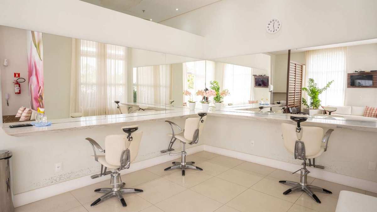 Segurança e lazer completo: Portaria 24 horas, sistema de TV, jardins, salão de festas, salão de jogos, quadra, quadra de squash, piscina, academia, parquinho, brinquedoteca, praças, etc.