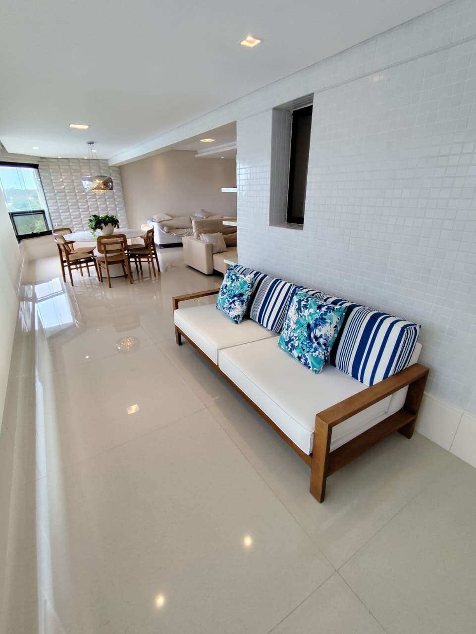 Sala ampla em vários ambientes com varanda integrada