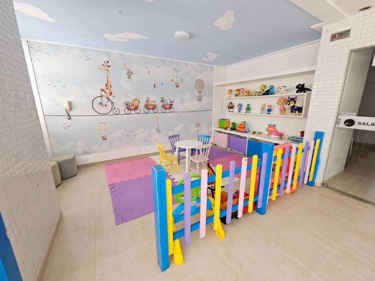 Estrutura completa de segurança e lazer: academia, piscinas, salão de festa, salão de jogos, parquinho, brinquedoteca, jardins, etc.