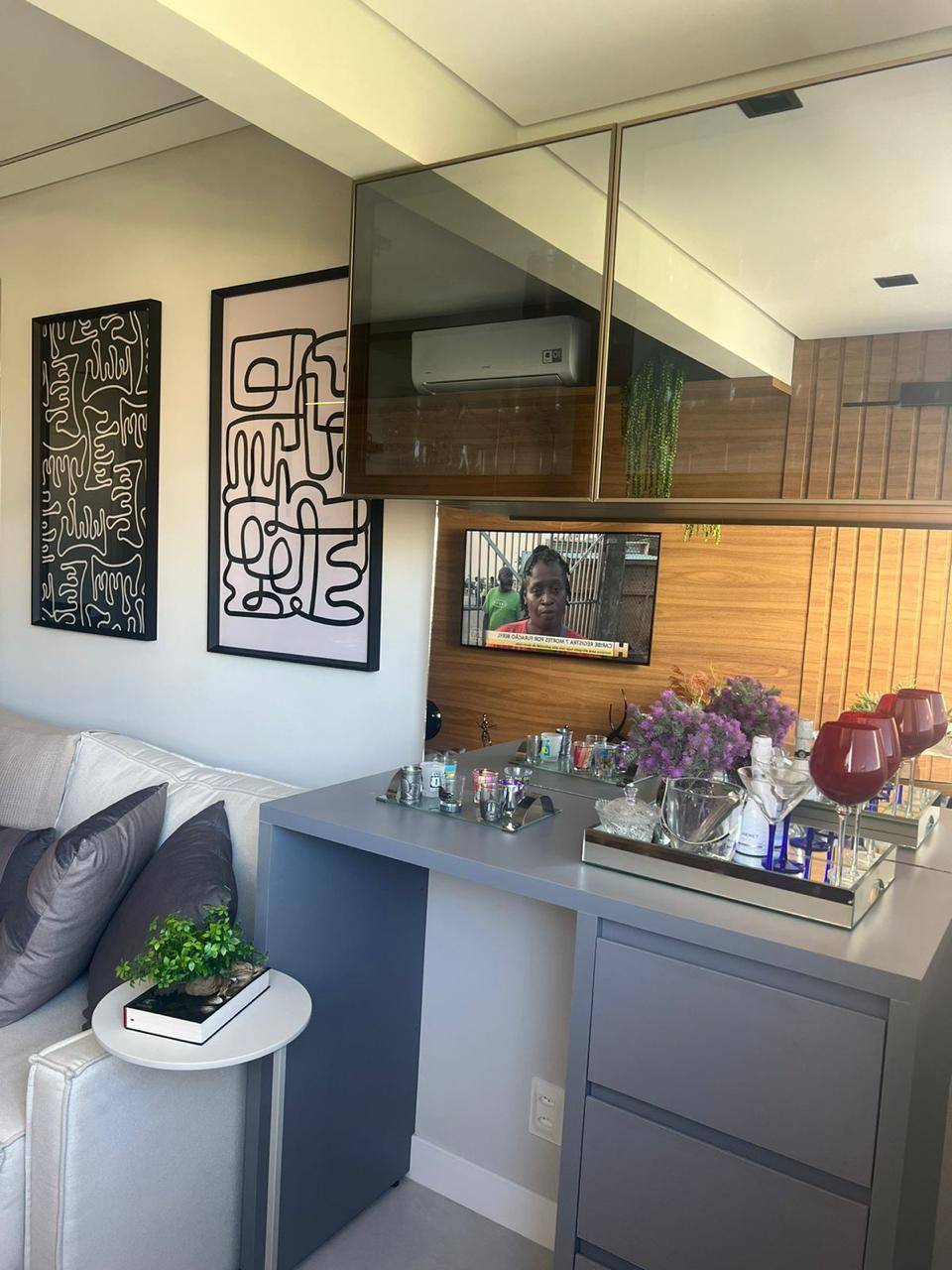 Sala ampla com varanda integrada