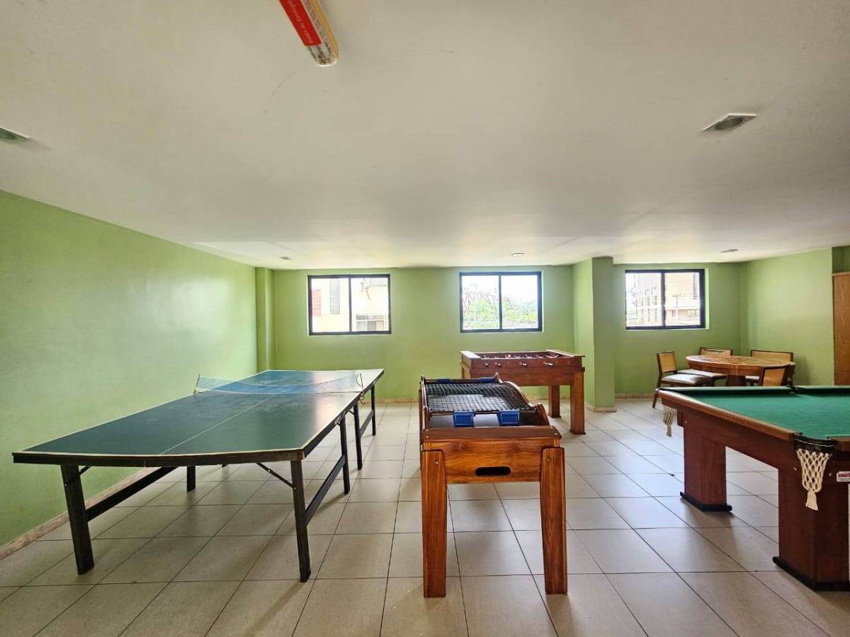 Área de Lazer e segurança: segurança 24 horas, piscina, salão de festa, salão de jogos, sauna, parquinho, quadra, etc.