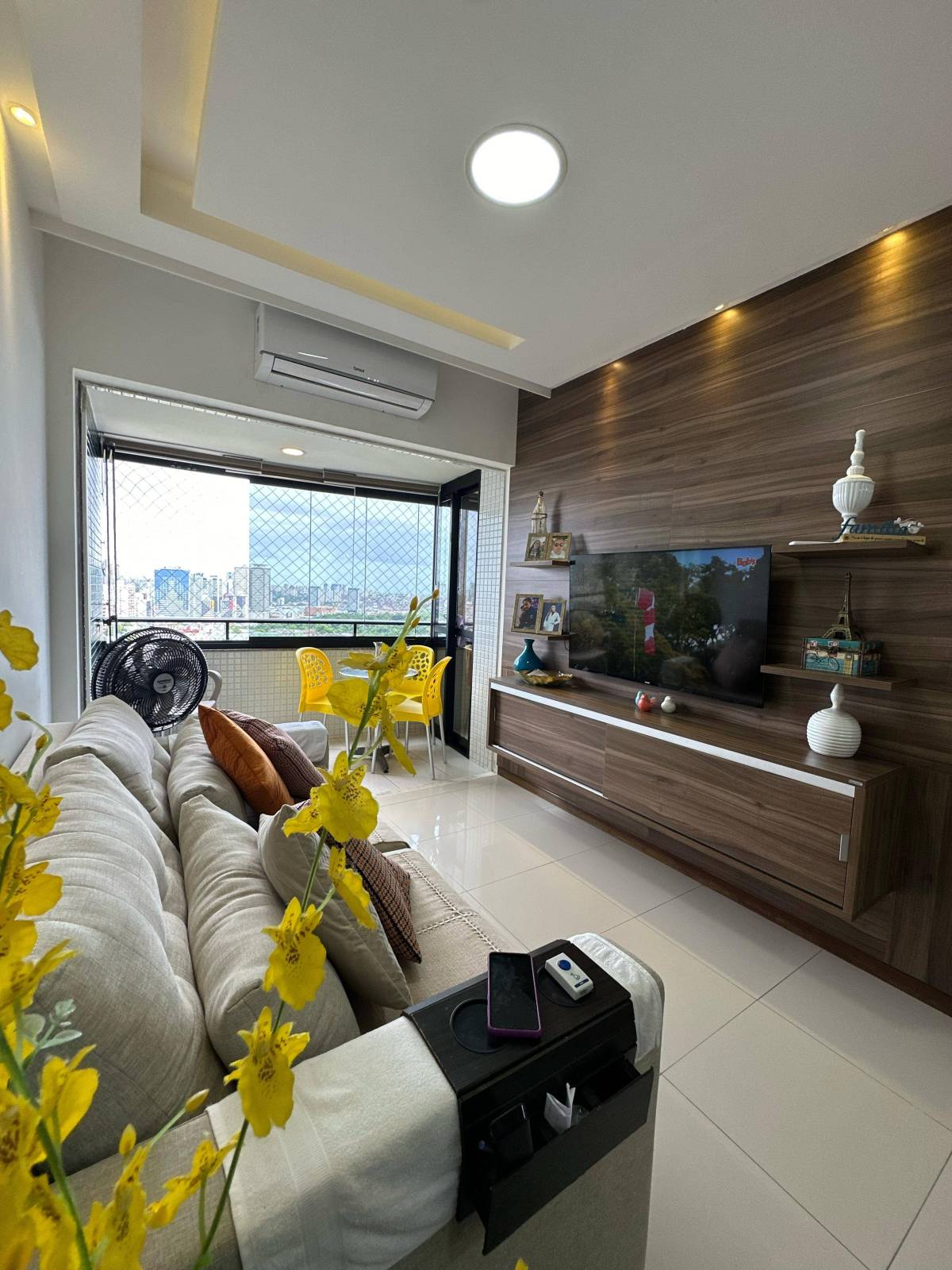 Sala ampla com varanda integrada