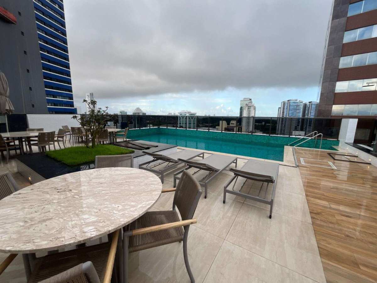 Estrutura completa de segurança e lazer: academia, piscinas com borda infinita, salão de festa, salão de jogos, sauna, bicicletário, etc.