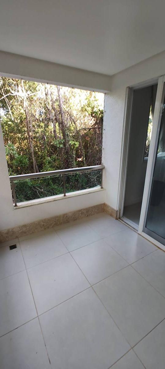Varanda com vista área de lazer e verde