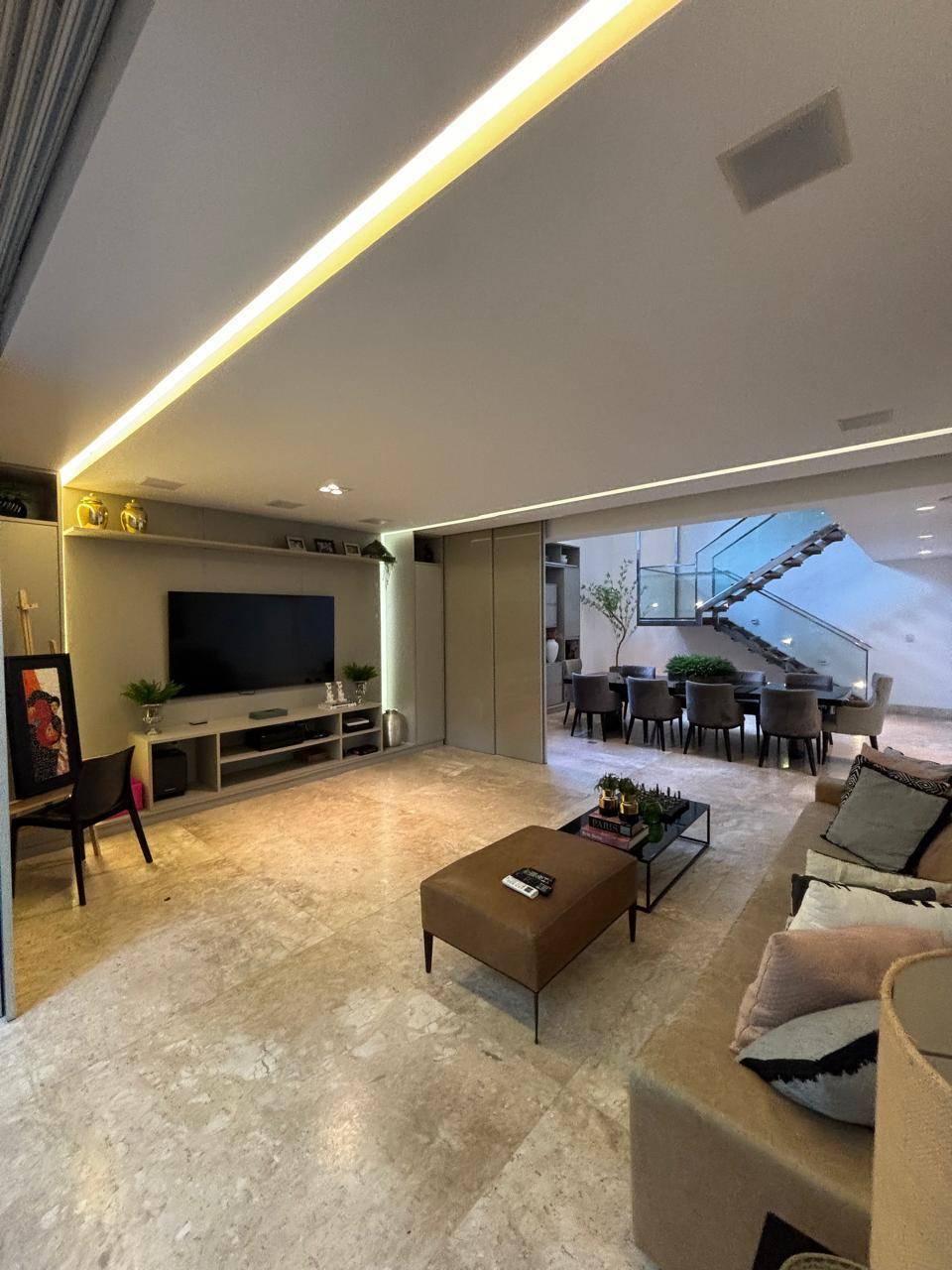 Salas amplas em vários ambientes com pé direito elevado
