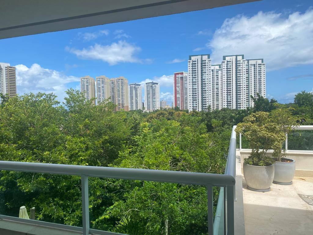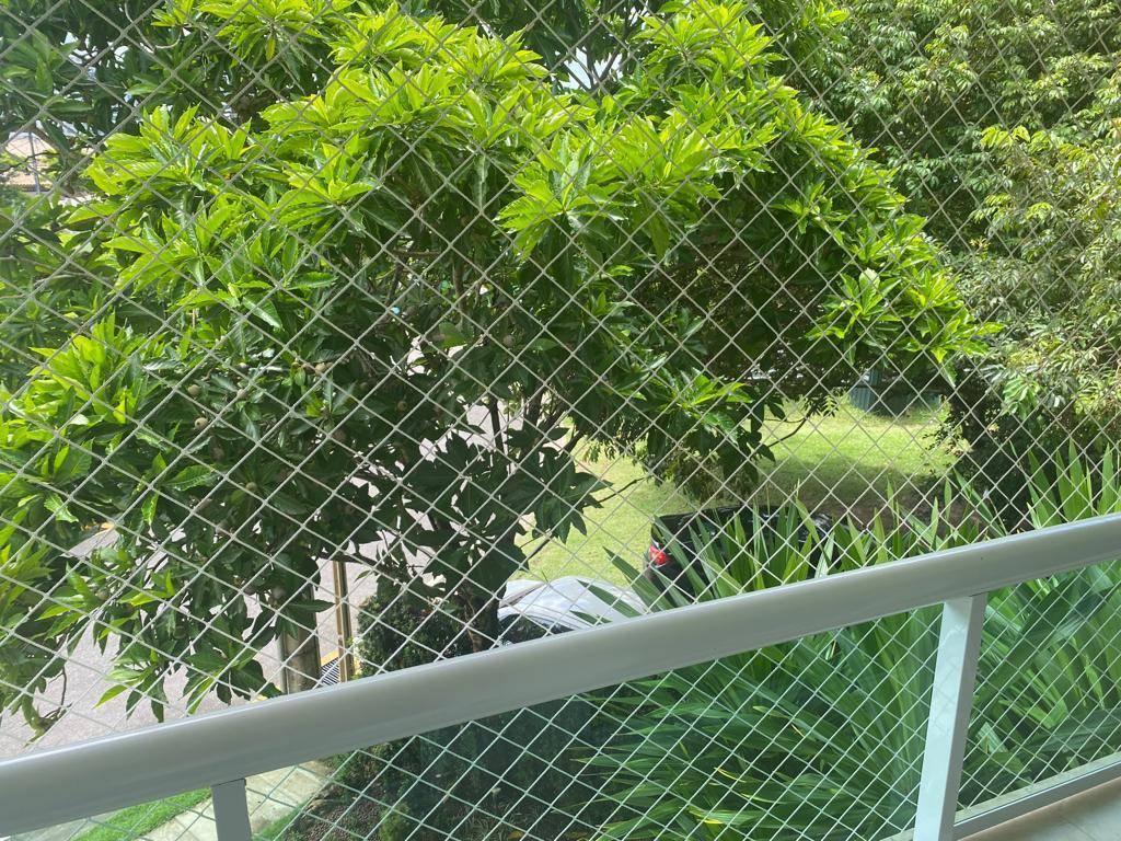 Varanda com vista área de lazer e verde