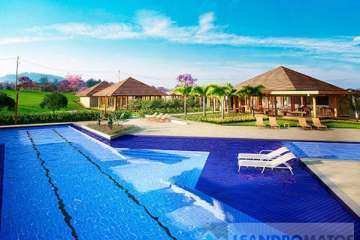 Um condomínio lindo e estruturado com total área de Lazer e segurança: segurança 24 horas, piscina com deck, piscina com raia, quiosque, salão de festas, churrasqueira e bar, jardins, quadra, quadra de tênis, campo, parquinho, academia, etc.
