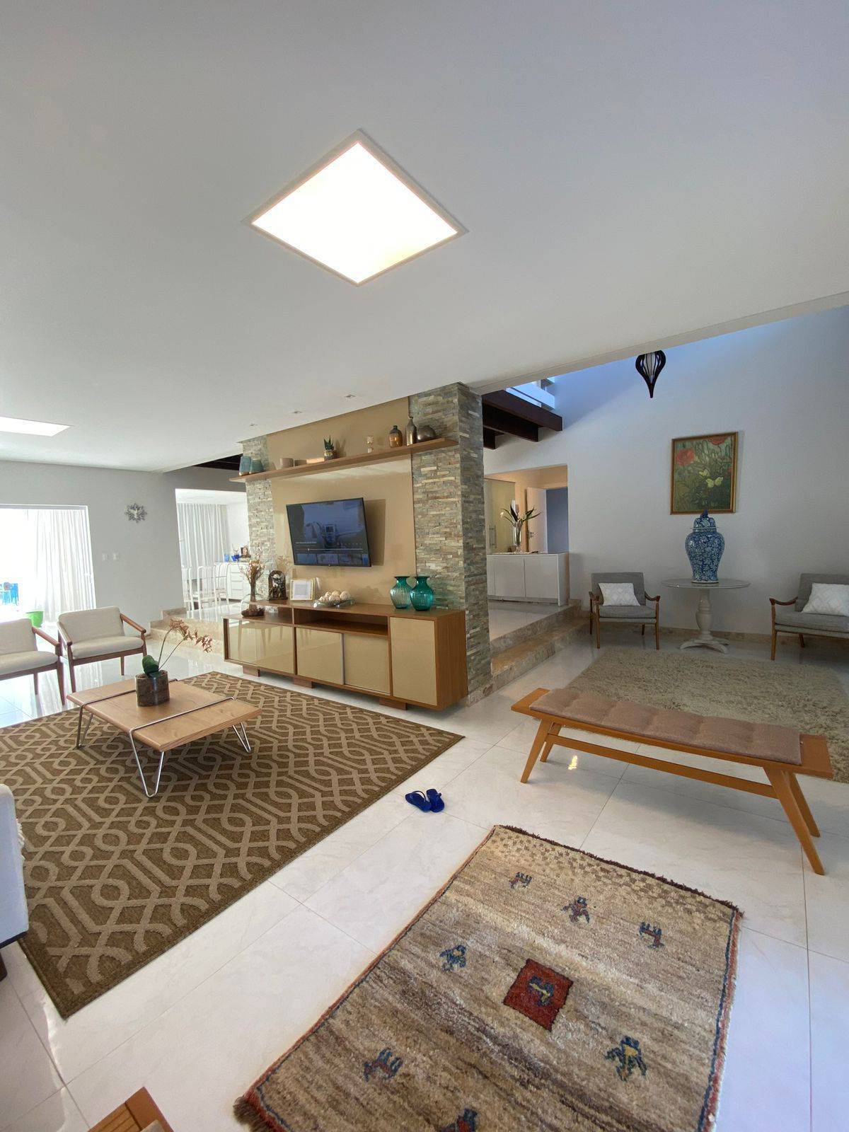 Sala ampla em vários ambientes confortáveis