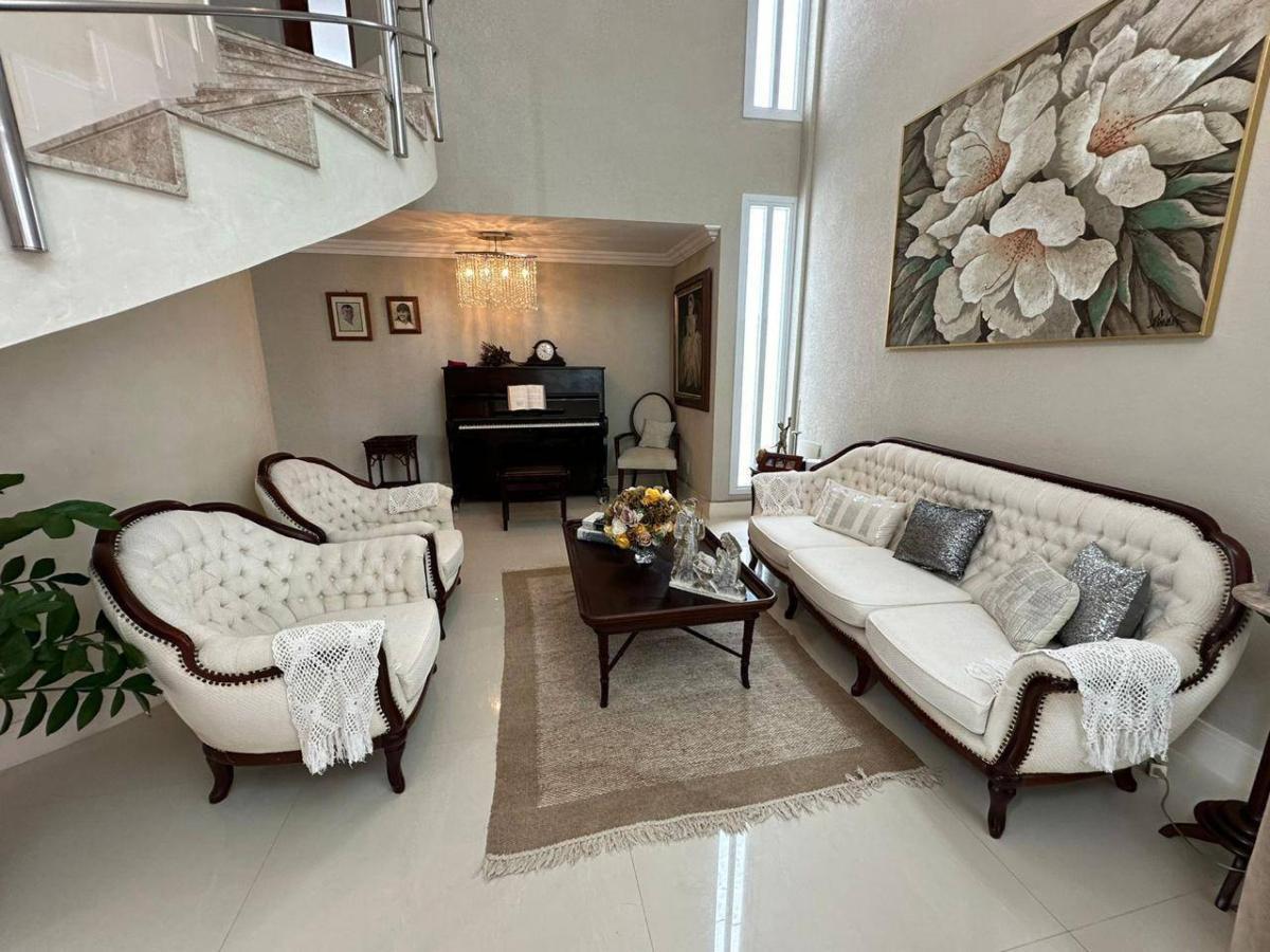 Sala ampla em vários ambientes com pé direito elevado