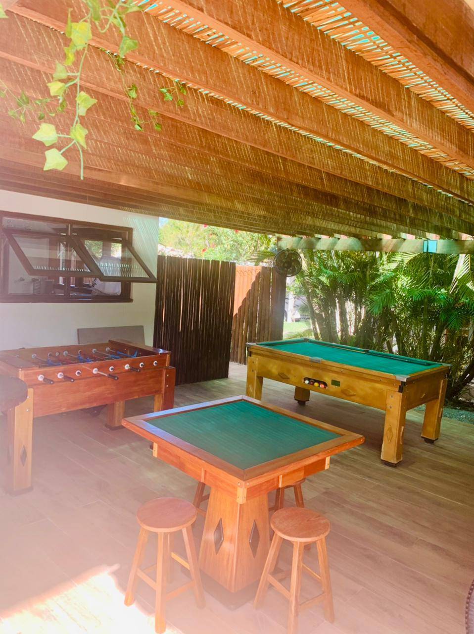 Área Gourmet com churrasqueira, bar e banheiro serviço. Mesas de sinuca, carteado, totó ( Pimbolim), etc.
